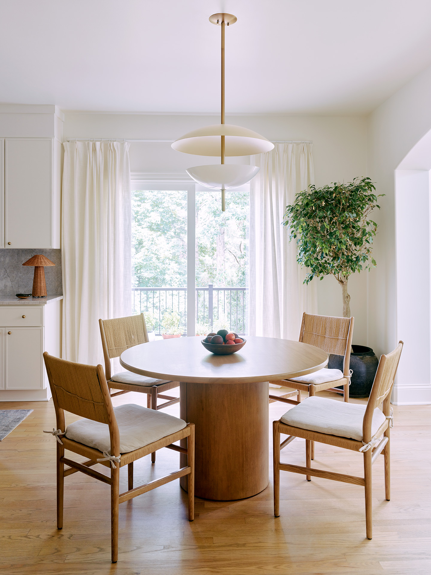 Bodesign Studio reimagined the entire heart of the home, transforming the entryway, kitchen, and breakfast nook into a cohesive and welcoming space. We enhanced the existing architectural details, like the arches that define each area, while introducing organic modern and Mediterranean influences. The new design blends texture, warmth, and timeless materials to create a home that feels elevated yet lived-in.